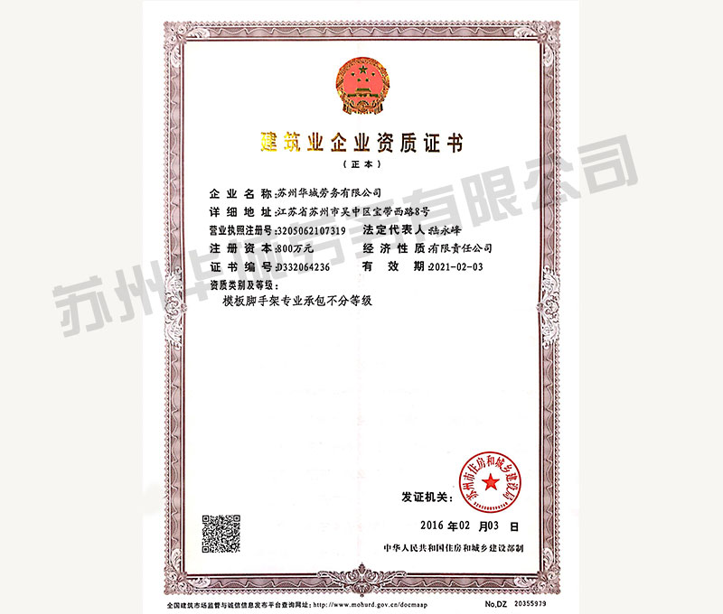 蘇州市蘇城建筑安裝工程有限責任公司,擁有主項建筑工程施工總承包一級資質,增項市政公用工程施工總承包二級資質和建筑裝修